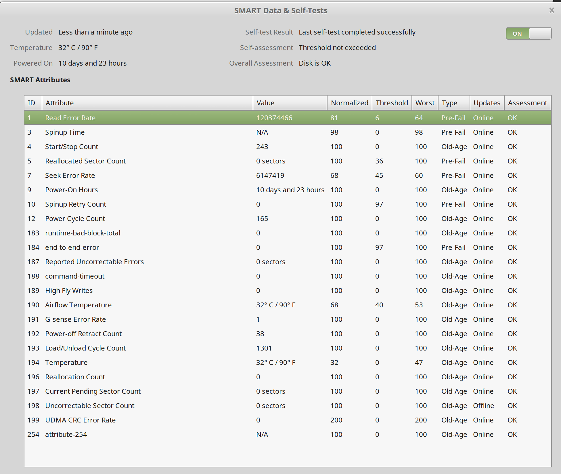 Robert Riedl over 5 yearsThe short scan looks fine, but you could do a long one to make sure. There are some very recent (two weeks ago) firmware releases for your HDD that explicitly mention "crashes due to power loss" - you should definitely give that a look! -